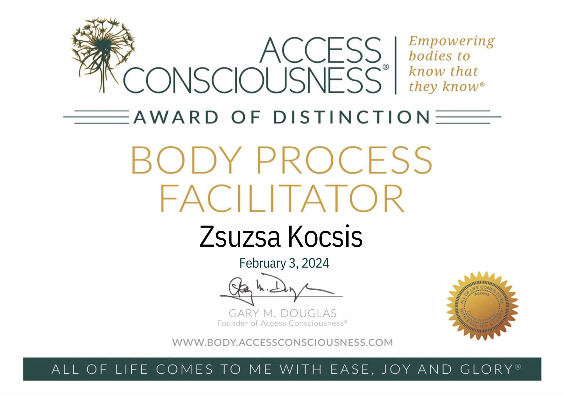Mi van, ha azok a dolgok, amikre problémaként, betegségként tekintettél, távolról sem azok? Miről tájékoztat a tested, amit ha nem betegségként, elhízásként, tünetként tartanál számon, nem is lenne az? A testednek saját tudatossága van. Kérdezheted és válaszol. Megkérheted és megteszi. Mi lenne, ha megtanulnál a nyelvén beszélni az Acess testkezelések segítségével? Az Access Consciousnessnek közel 60 testkezelése van, amelyek arra szolgálnak, hogy a testünkre erőltetett nézőpontokat kioldják onnan.