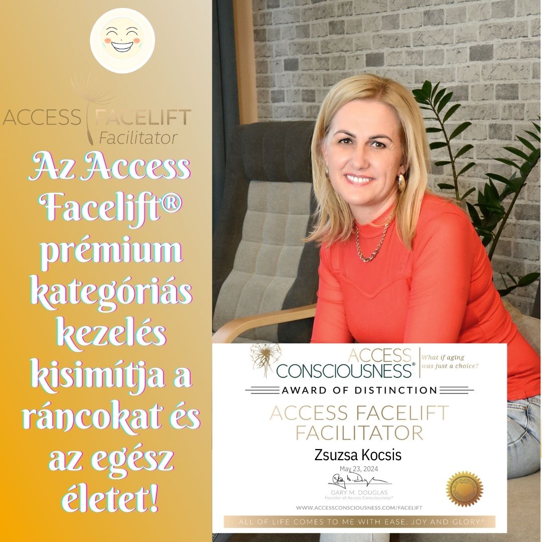 Az Access Facelift testkezelés az Access testkezelések közül a Prémium kategóriába tartozik. Nem véletlenül, hiszen több, mint 30 féle energia fut a kezelések alkalmában. A dekoltázst és az arcot kezeljük, de az egész testen is futtatható. A Facelift testkezelés tanfolyamon mindkét módszert megtanulják a résztvevők. Ez a varázslatos testkezelés kisimítja a ráncokat, hiszen lenyugtatja az elmét, az idegrendszert, és az egész testre nyugtató hatással bír. Egy varázslatos energia, melyet ha megtapasztalunk, csak kérni tudunk belőle. A tanfolyamon részt vevők hivatalos Access Facelift kezelővé válnak, ezt követően már ŐK is tudják ezt a csodálatos testkezelést terjeszteni a világban és segíteni az embereket a nyugodt, boldog élet megélésében. Ha invitál a tanfolyam szeretettel várlak.
